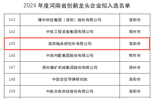 軸研所再次入選河南省創(chuàng)新龍頭企業(yè)