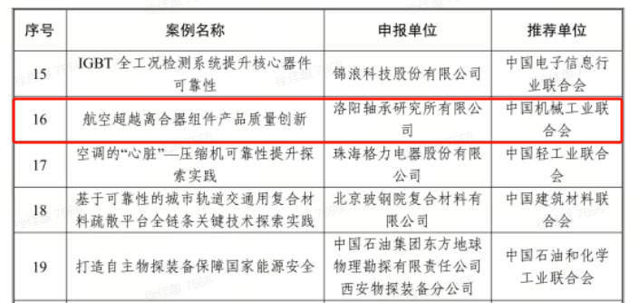 軸研所再次榮登工信部質(zhì)量提升與品牌建設(shè)典型案例名單