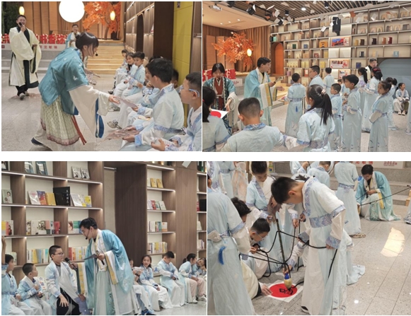 家長陪伴孩子們完成《洛神賦》知識問答,在古雅的場景中構(gòu)建起文化對話的橋梁。此次“書香+親子”模式讓抽象的文化符號轉(zhuǎn)化為可感知、可參與的成長養(yǎng)分,當(dāng)孩子們捧著《洛神賦》文創(chuàng)禮物離場時,傳統(tǒng)文化的種子已隨水拓畫的漣漪、毛筆字的墨香悄然扎根。